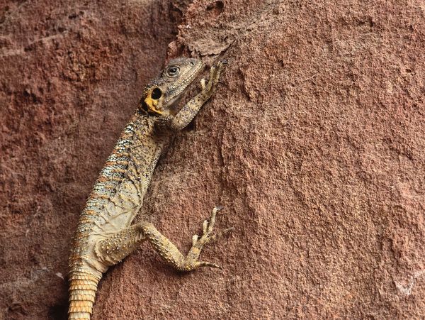 Sinai agama: A relatively large lizard that often basks on rocks. During mating season, males develop a striking blue head and upper body.