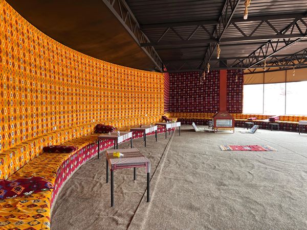 The Wadi Rum Nature story camp is located approximately 15 km from the Wadi Rum Village. It is located in a sheltered area, tucked in close to the steep cliffs on the eastern side of Jabal um ajal